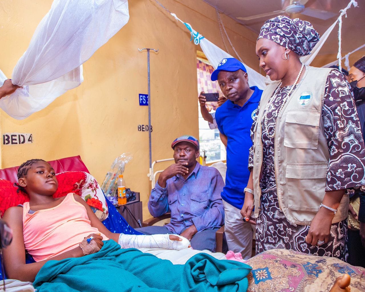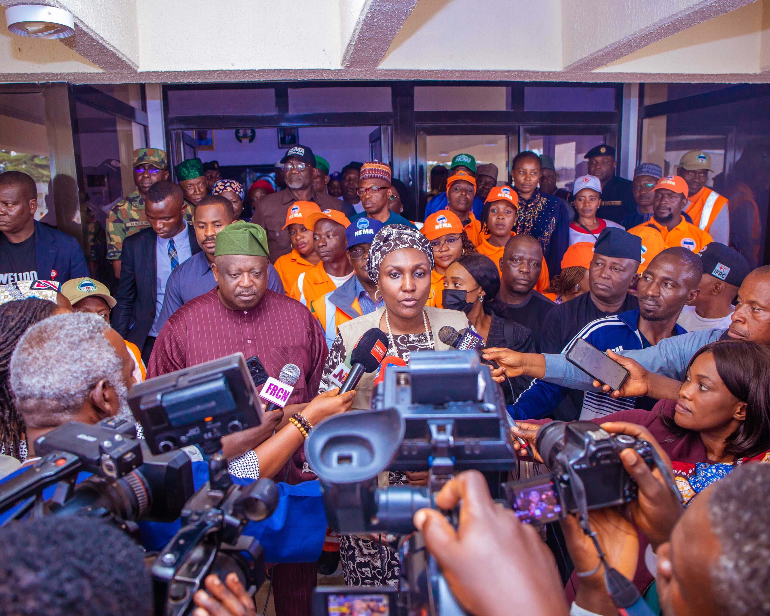 L-R: Secretary to the Plateau State Government, Mr Samuel Jattau, Director General National Emergency Management Agency (NEMA) , Mrs Zubaida Umar and Executive Secretary, Plateau State Emergency Management Agency, Mr Sunday Abdu during an on the spot assessment of the site of the collapsed school building and condolence visit to the Governor over the incident in Jos, Plateau State on Sunday 14th July, 2024.
