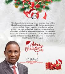 He gave the charge in Abuja on Wednesday, December 24, 2025, in a Christmas Message to the nation. According to him, “Nigeria needs the refreshing hope, love and light which Christ brought to the entire world” He enjoined Nigerians to join hands together to make the nation greater and more respected in the comity of nations.