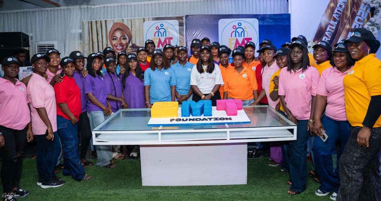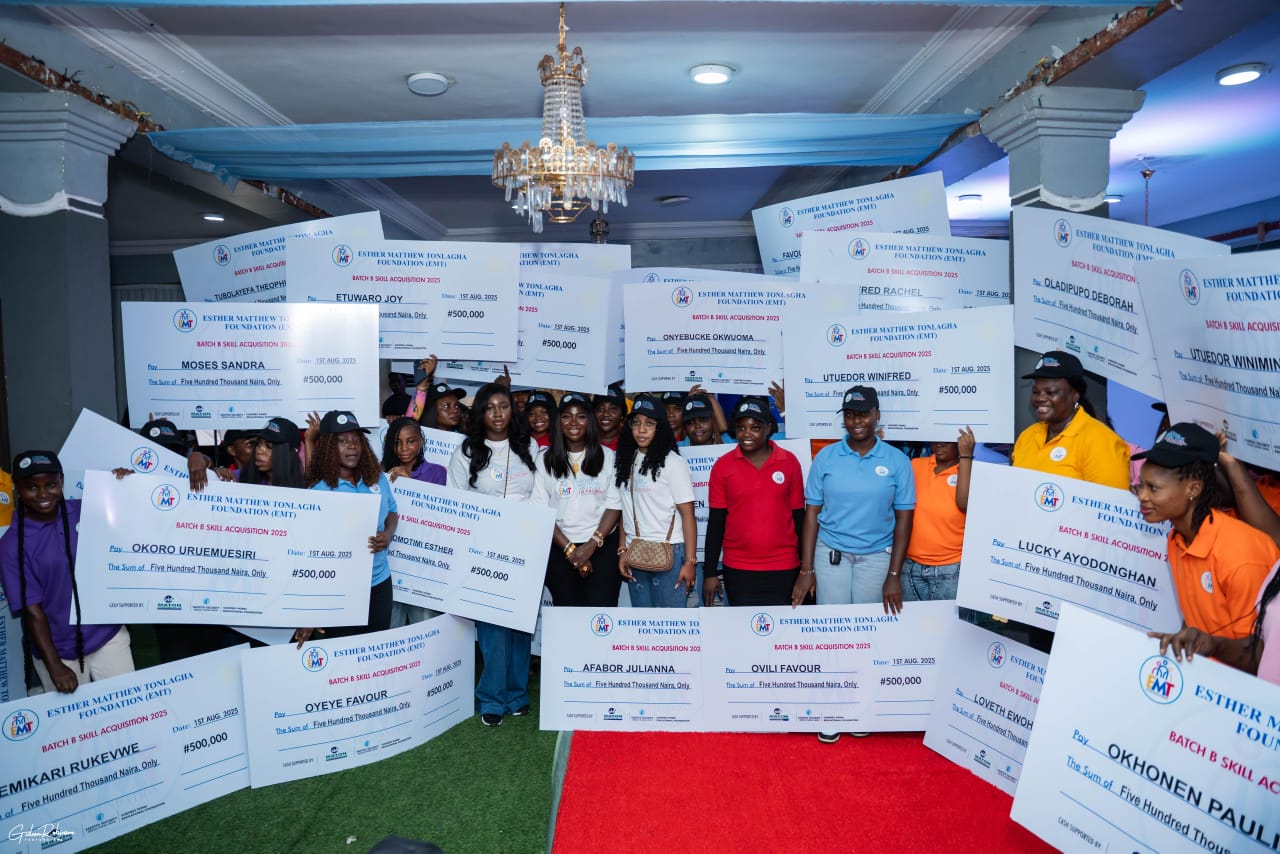 EMT: Founder of Esther Matthew Tonlagha Foundation, Mrs. Esther Matthew Tonlagha flanked by the graduates during the EMT Niger Delta Youth Empowerment programme graduation ceremony in Warri, Delta State recently