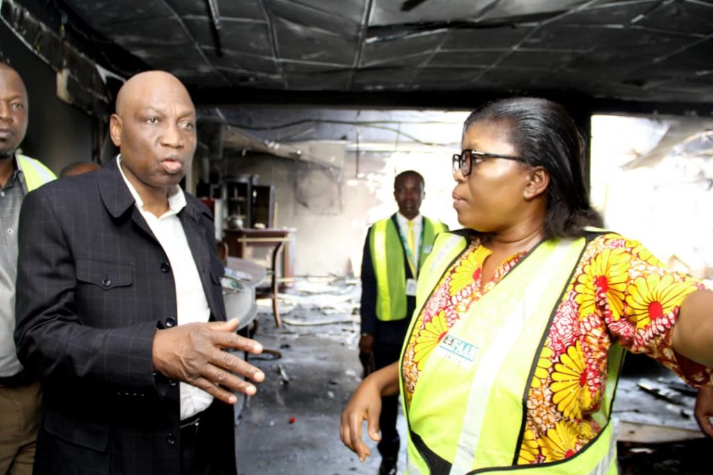 The Managing Director of the Federal Airports Authority of Nigeria, Engr. Saleh Dunoma, has visited the Sam Mbakwe International Cargo Airport, Owerri, to assess the level of damage after fire gutted a section of the building.