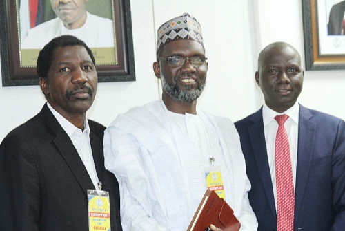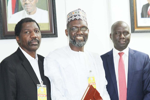 L-R, Secretary General, North Central Zone, Commodity Brokers Association of Nigeria Mr Ibrahim Maliki, Registrar CBAN, Mr Saleh Kwaru and Acting Executive Commissioner Operations, Securities and Exchange Commission Mr Isyaku Tilde during a Meeting between SEC and CBAN in Abuja