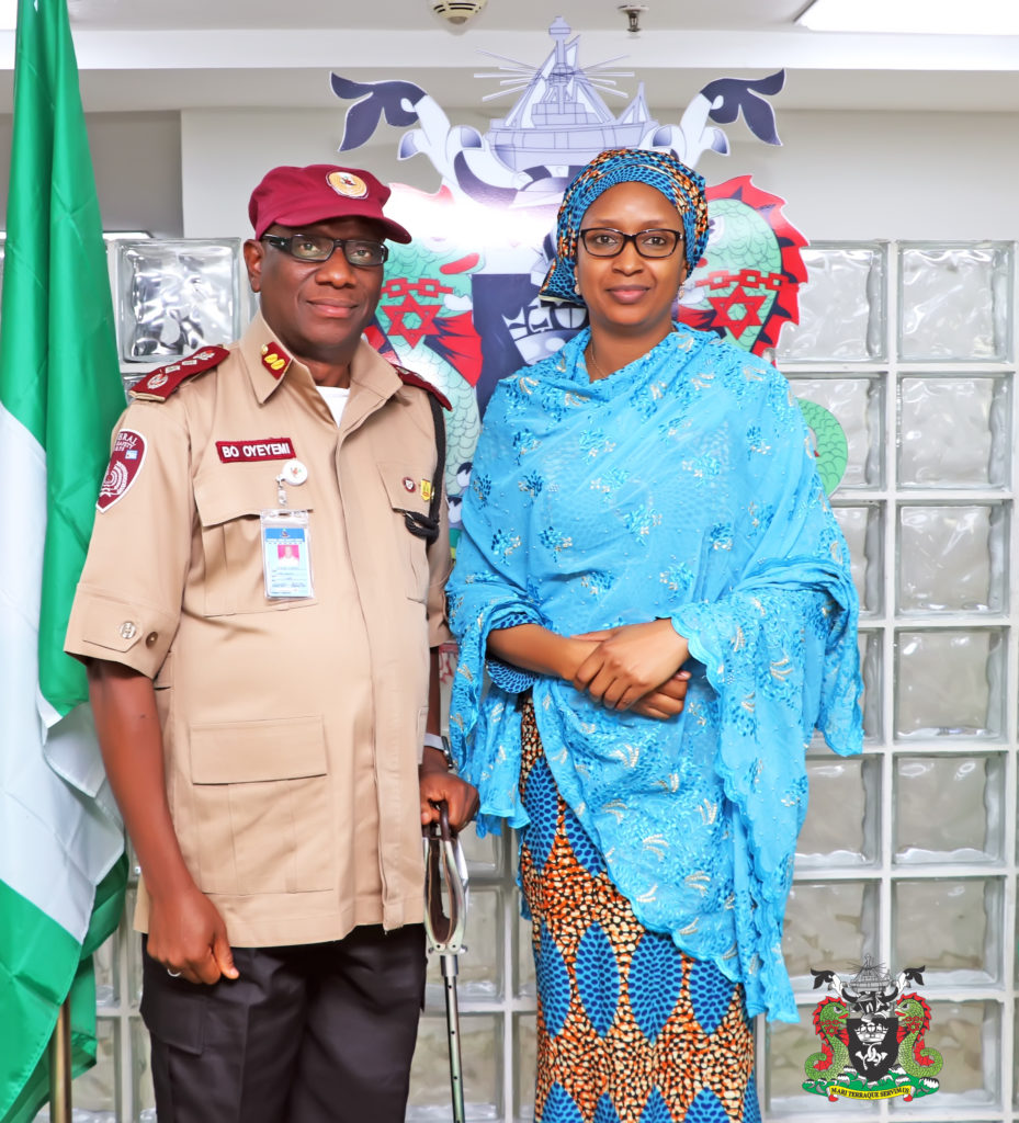 Caption1. The Managing Director, Nigerian Ports Authority (NPA),Hadiza Bala Usman (right) and the Corps Marshal, Federal Road Safety Corps (FRSC), Dr. Boboye Oyeyemi, who paid a courtesy call on the MD at the NPA Corporate Headquarters in Lagos, yesterday.