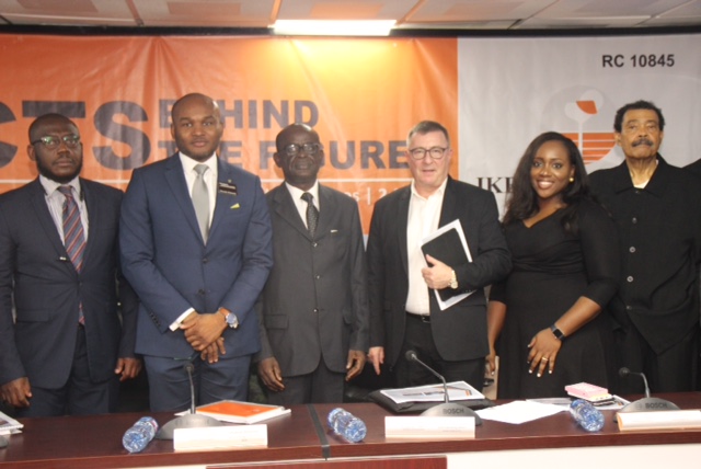 L-R: Tony Ibeziako, Head Primary Market, NSE, Olumide Bolumole, Divisional Head, Listings Business, NSE, Theophilus Eniola Netufo, Chief Operating Officer, Ikeja Hotel Plc; Barry Curran, General Manager, Ikeja Hotel Plc; Mrs. Chisom Umeofia, Company Secretary , Ikeja Hotel Plc; Dr. Alex Thomopulos, Non-Executive Director, Ikeja Hotel Plc during the Facts Behind the Figures Presentation of Ikeja Hotels today at the Exchange.