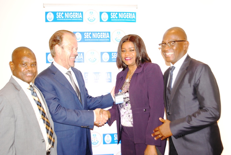 L-R, Head of Department, Securities and Investments Services, Securities and Exchange Commission Mr Abbas Abdulkadir, Head of Department, Legal Department SEC Mrs Anastasia Braimoh, Managing Partner, Perchstone and Graeys Mr Osaro Eghobamien (SAN) and Professor of International Finance Law, University College London Prof Graham Penn during the Securitization Training in Abuja, Monday